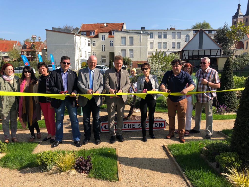 Gestern übergab Bürgermeister Frank Helmenstein seinem Amtskollegen Jörg Rehbaum das offizielle Geschenk der Stadt Gummersbach, ein Beachhandballfeld, zur Eröffnung der Landesgartenschau 2018 in unserer Partnerstadt Burg. Die Landesgartenschau verdiene für Burg das Prädikat „historisch“, so Bürgermeister Helmenstein: Sie sei großartig, wunderschön und ein nachhaltiger Beitrag zur Stadtentwicklung.