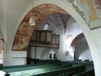 Erst im Jahr 1910 fand man in dieser romanischen Dorfkirche umfangreiche spätgotische Wand- und Gewölbemalereien. Sie zeigen unter anderem das Jüngste Gericht, die Verkündigung, den Drachenkampf des Heiligen Georg und die Versuchung des Heiligen Antonius.